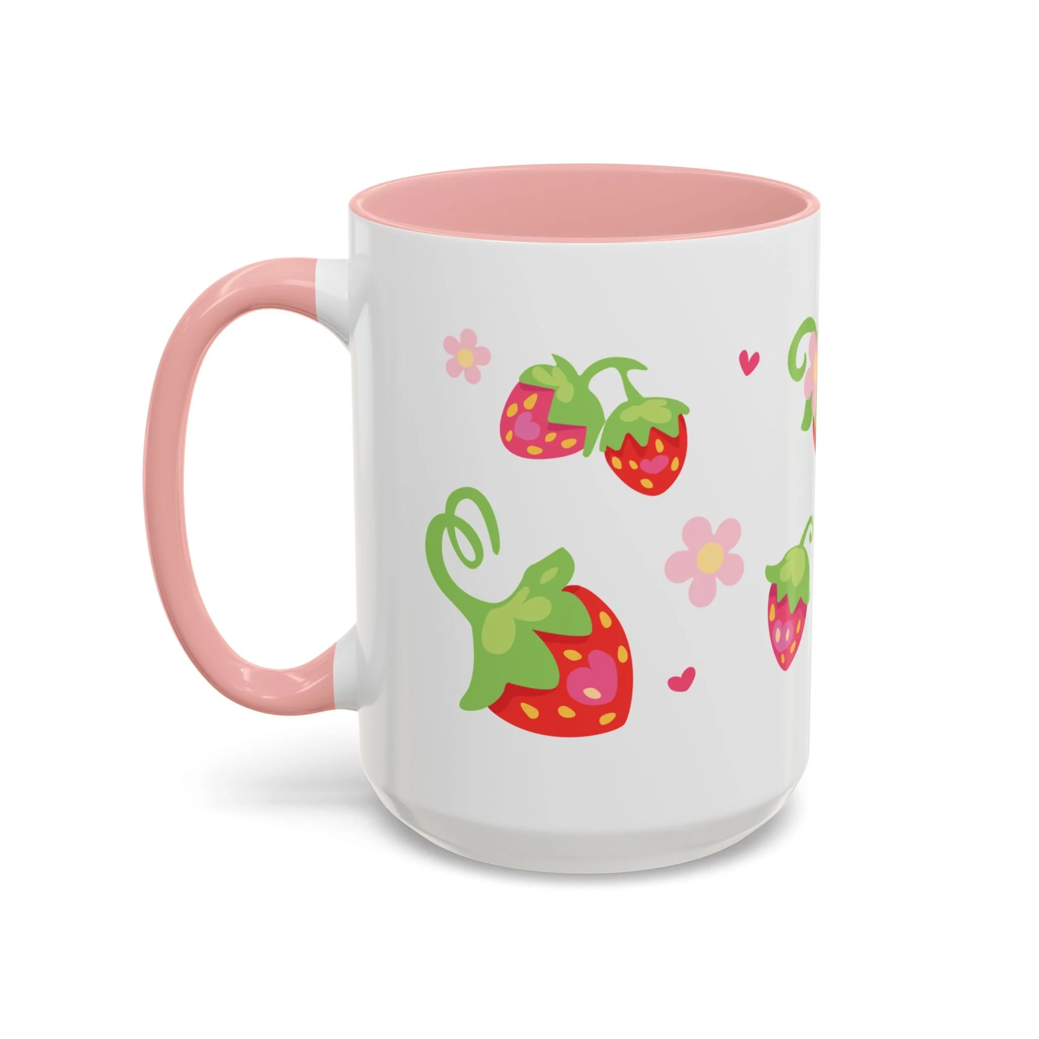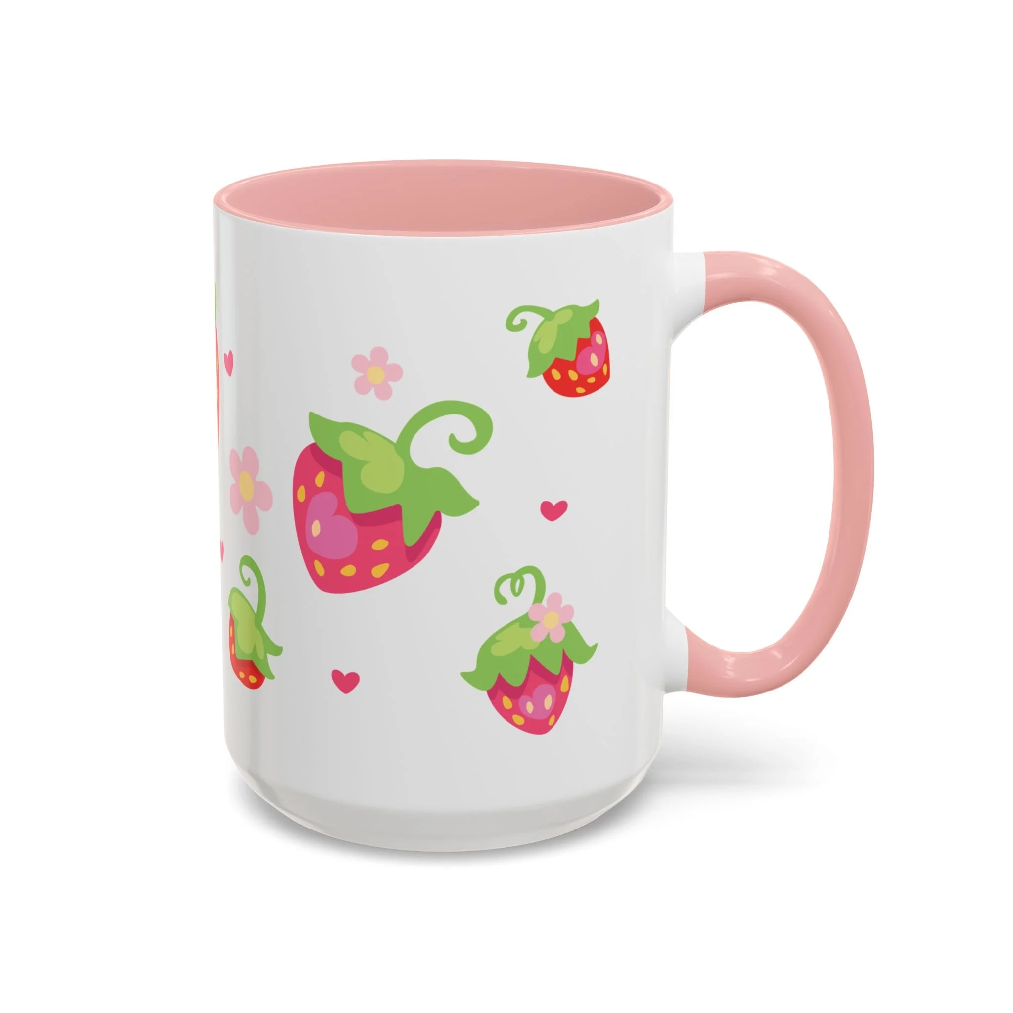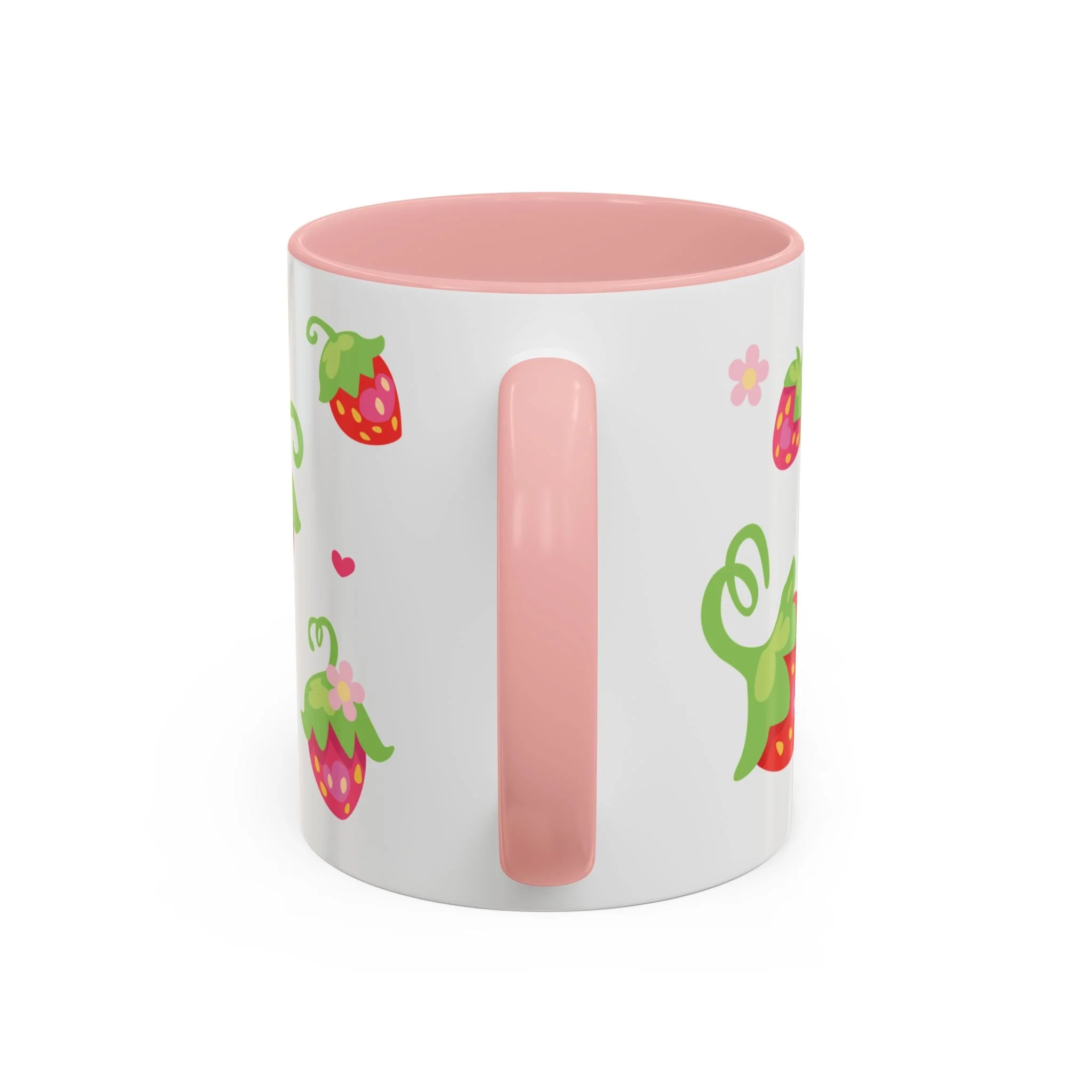 Bright, cheerful, and a little bit whimsical — this ceramic mug brings a pocketful of strawberry-sweet joy to slow mornings and busy afternoons alike. Playful strawberry motifs and tiny hearts dance across a glossy white canvas while the colored interior and handle give each sip a pop of personality. Thick ceramic holds heat well, and the comfortable C-shaped handle feels familiar in hand. Whether it’s a cozy desk companion during a creative session or a quiet moment with tea on the porch, this mug adds a light, happy note to everyday routines.